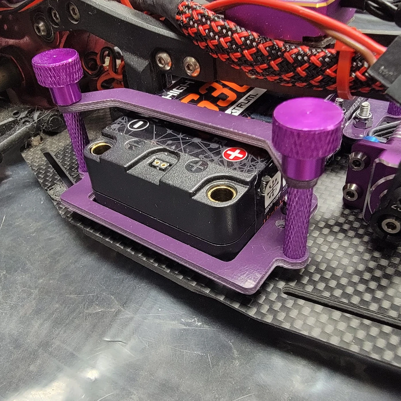 This is a custom Battery tray made from g10 fiberglass for the MST RMX and MRX. These are a universal fit battery tray for all batteries. The kit will include all hardware needed to install on your car, it will also include two different sized standoff for use with tall battery packs or slim battery packs.