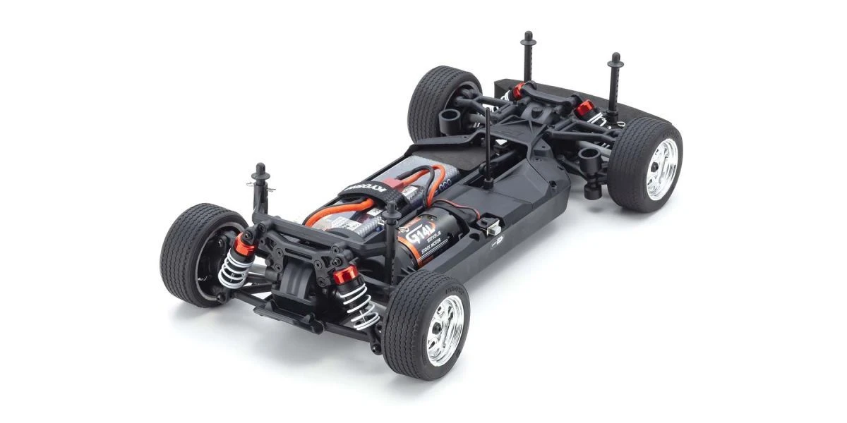 For the pure enjoyment of R/C car driving, the combination of a beautifully reproduced car body with the FAZER series chassis can’t be beaten. Kyosho has taken its standard touring car chassis and given it a full model makeover that has evolved performance to a new level. A simplified design with fewer parts has improved maintenance efficiency and reduced weight while core strength and rigidity has been increased through new materials and ribbing and stiffeners on front and rear. In addition, the symmetrical chassis design synergizes excellent front-rear balance through the suspension with responsive control, irrespective of power source. Featuring front & rear gear differentials, oil shocks and full ball bearing specs, the high durability and impact resistance allows drivers to unleash the full potential of the chassis. Brake disc wheel hubs with two different offsets (0mm, +5mm) provide compatibility with 190mm and 200mm width body styles and allows the wheelbase to be adjusted to 260mm by replacing some parts (sold separately) for compatibility with other 1/10 scale body styles, in addition the body included. The Readyset package comes fully assembled and includes everything except charger and battery for the chassis, and batteries for the transmitter.