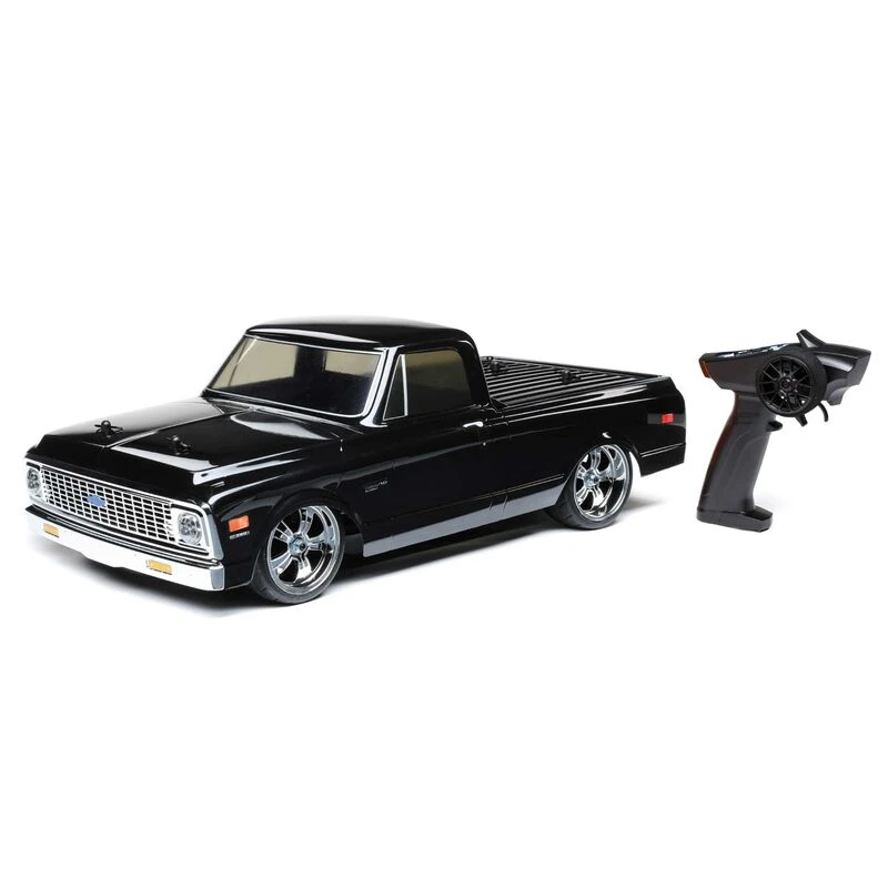 Turn heads everywhere you go with the Losi® V100 Chevy 1972 C10 Truck. The latest addition to Losi’s on road vehicles, the officially licensed body comes standard with a molded grill, bucket lights and bumper lights to improve the scale details. Losi has once again taken it to the next level with a truly innovative design and the quality workmanship drivers expect. Auto fans will love the truck’s incredible scale details while RC enthusiasts won’t be able to get enough of the AWD shaft driven drivetrain and proven worry-free chassis. The AWD drivetrain provides impressive traction and enhances performance while the V100 chassis gives you a balanced, neutral handling truck that’s fun to drive. The 1972 C10 has been carefully crafted to give a classic silhouette that scale enthusiasts will love. From its low-rise body, to impressive performance, the Losi 1972 C10 Truck gives drivers Street Rod C10 styling in a proven V100 platform.