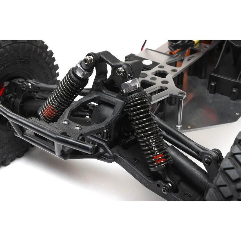 The long-travel shocks do a fantastic job of soaking up the energy from big bumps and jumps. They also feature threaded shock bodies with adjustment collars so you can fine tune the pre-load settings of the coil-over springs.
