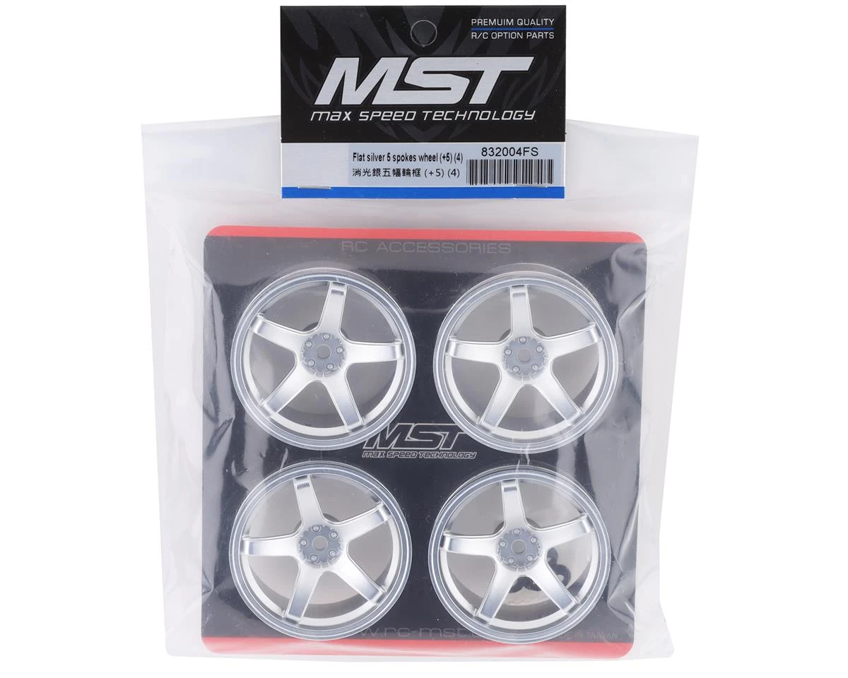MST 5 Spoke Wheel Set (Flat Silver) (4) (5mm Offset) W/12mm Hex