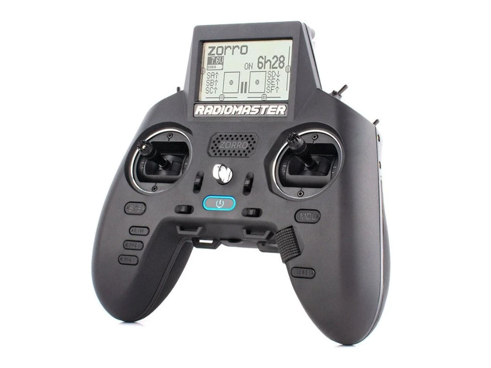 The Radiomaster Zorro is a full-featured, compact gamepad-style radio controller. Although small and lightweight, it has all the features expected of a modern radio. Perfect for those needing something small to throw in their field bag.