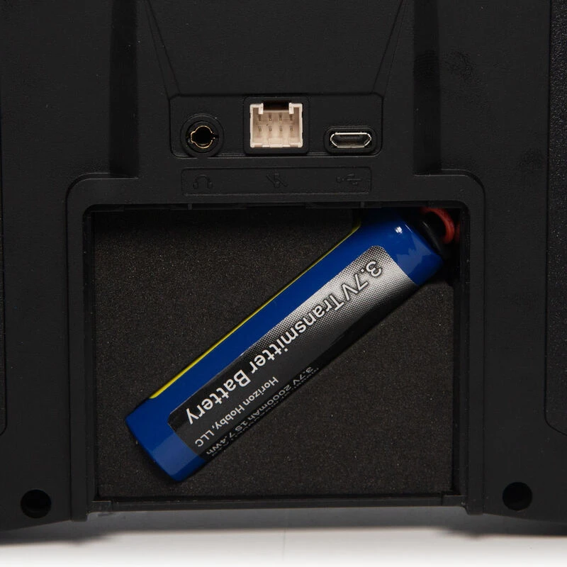 The NX8 transmitter includes a long-lasting 3.7V 2000mAh 1S Lithium Ion battery and a USB cable for convenient USB charging.